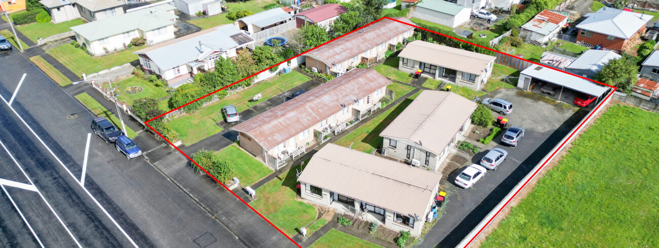 Durable solid brick construction, heat pumps throughout, and off-street parking support low maintenance for ownership and reliable tenancy. Several units have been renovated, adding modern appeal. Situated on approximately 2,023 sqm and located near the Alliance freezing works, this property has long-term investment appeal.