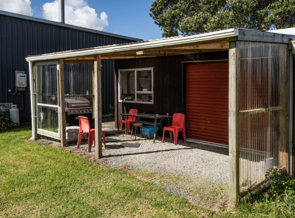 This shed has two non-consented bedrooms, with the downstairs master bedroom featuring an ensuite for added convenience, while the additional separate toilet upstairs enhances the shed’s functionality. The laundry area is located in the main part of the shed, so this adds practicality to daily living.