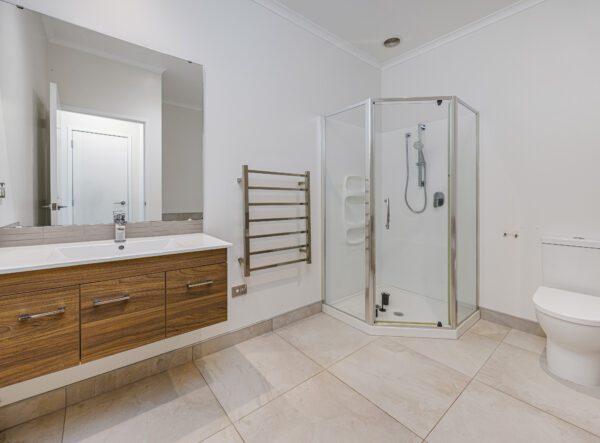 Featuring three bedrooms and two modern bathrooms, this home is designed for family comfort. The master suite includes a walk-in robe, elegant ensuite, and its own slider opening onto a private concrete patio – your own peaceful escape.