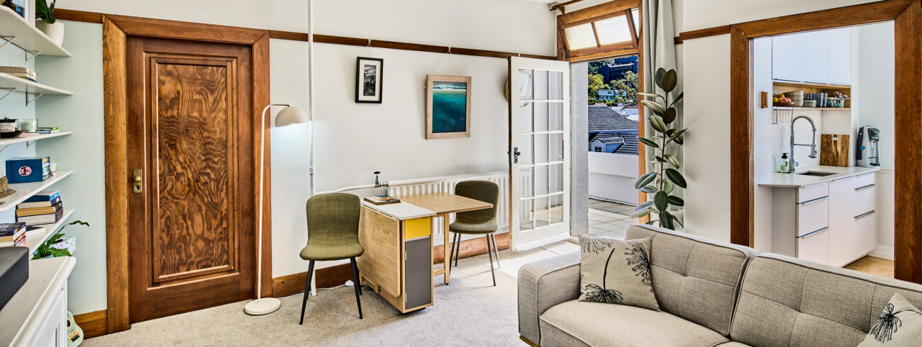 If you’re searching for a home that puts you right in the middle of Wellington’s most creative and vibrant neighbourhood, this two-bedroom apartment delivers the ultimate Aro Valley lifestyle.