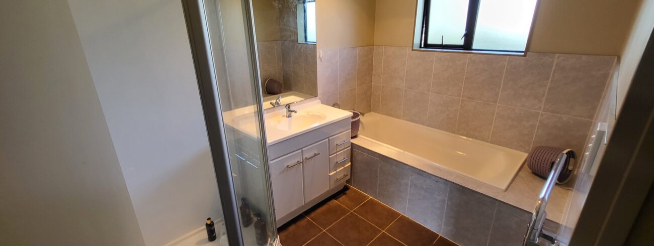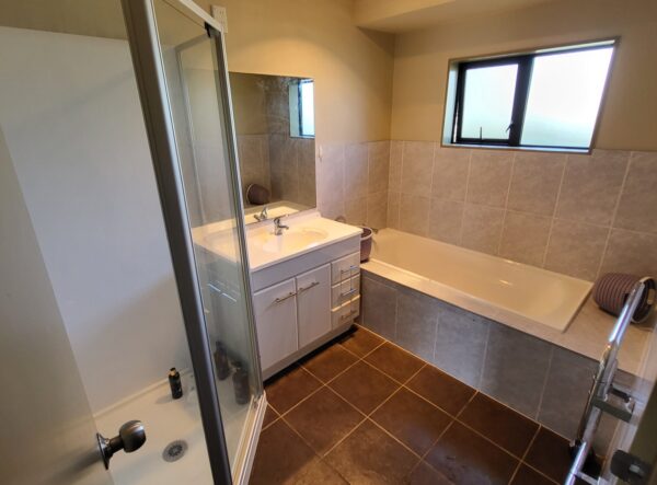 – Bathroom with bathtub and shower