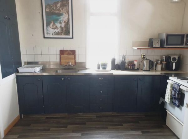 – Open plan kitchen living area with heat pump.