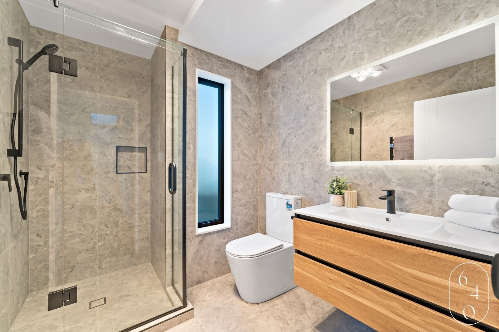 This newly built four-bedroom unit in Auckland combines modern design with practical living. Two spacious bedrooms feature ensuites, while a well-appointed main bathroom serves the remaining two bedrooms.