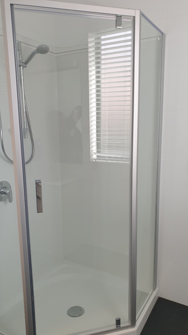 Bathroom with good size shower and vanity with utility area